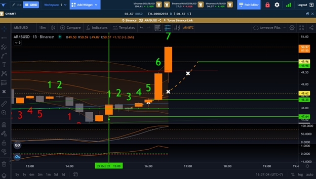 So in this instance we set an entry at $47.64 which picked up perfectly as the AI fired.