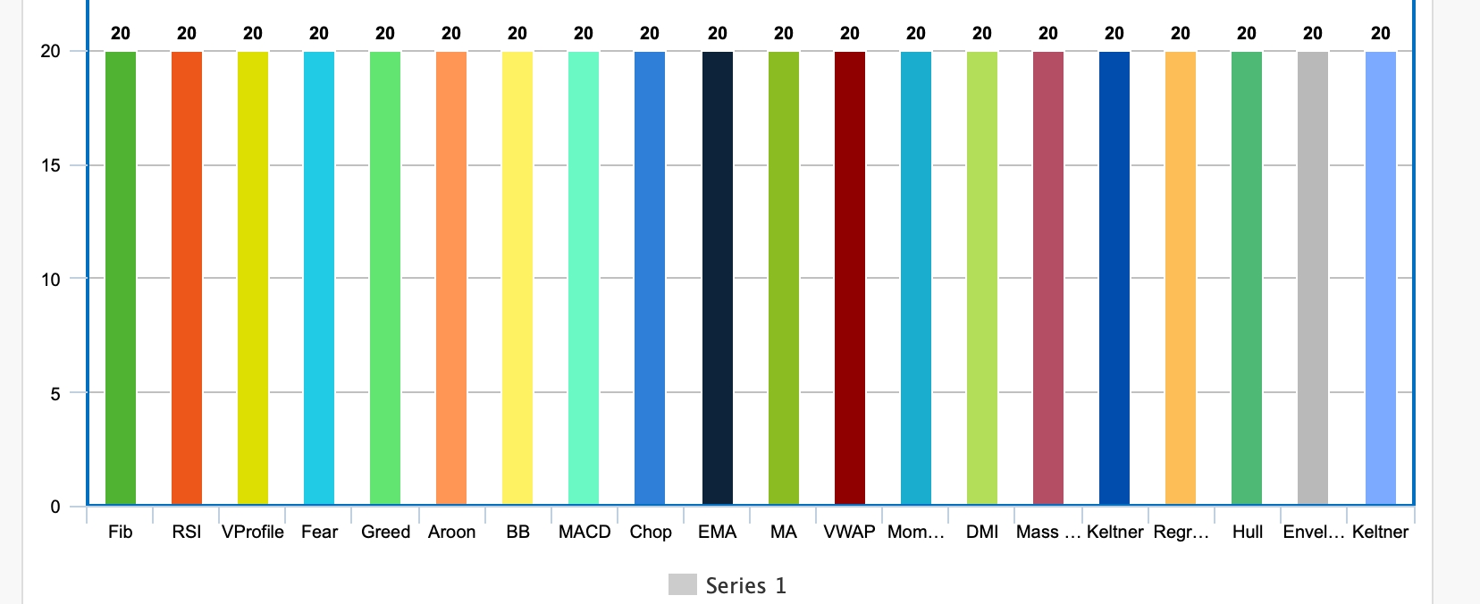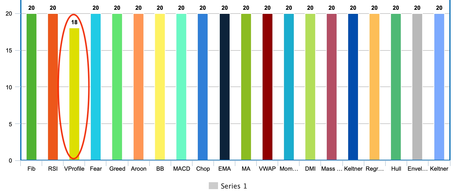 Well first, we need to understand how they form. As discussed before, Aurox indicator takes into account multiple different data points and algorithms. It waits until the right time to trigger an alert. Imagine a bar graph composed of different data points, each one trying to hit a maximum of 20. When all of them are "full" (or have reached 20), the indicator triggers on the chart. For example: